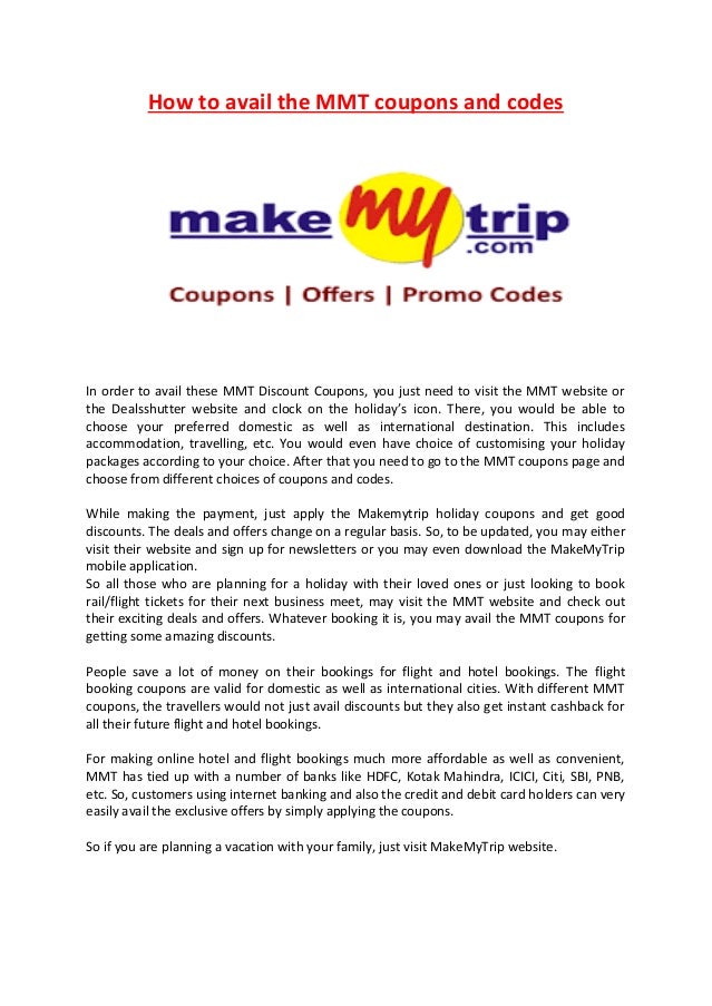 Redeem these undermentioned makemytrip credit card offers and enjoy astounding rebates on mmt credit card offer code is mandatory.